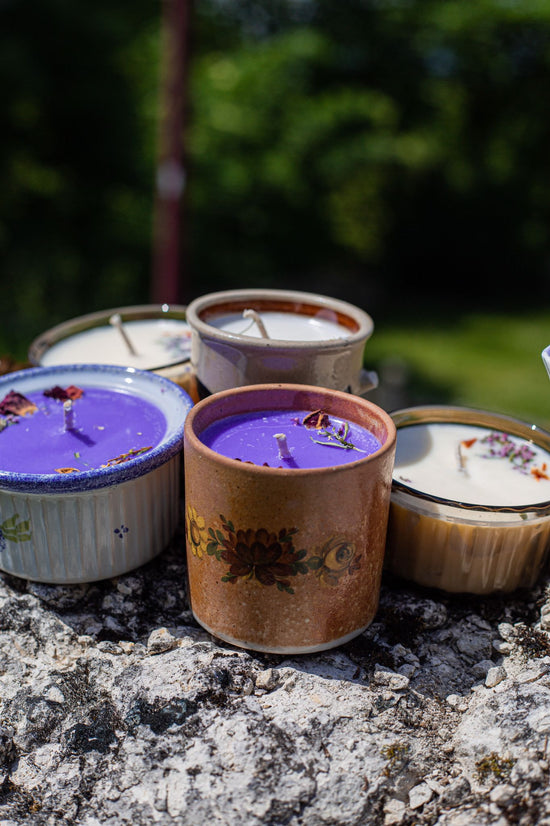Les bougies Mes Gribouilles sont de jolies bougies parfumées uniques et artisanales, coulées dans des récipients de seconde main, chinés avec soin.