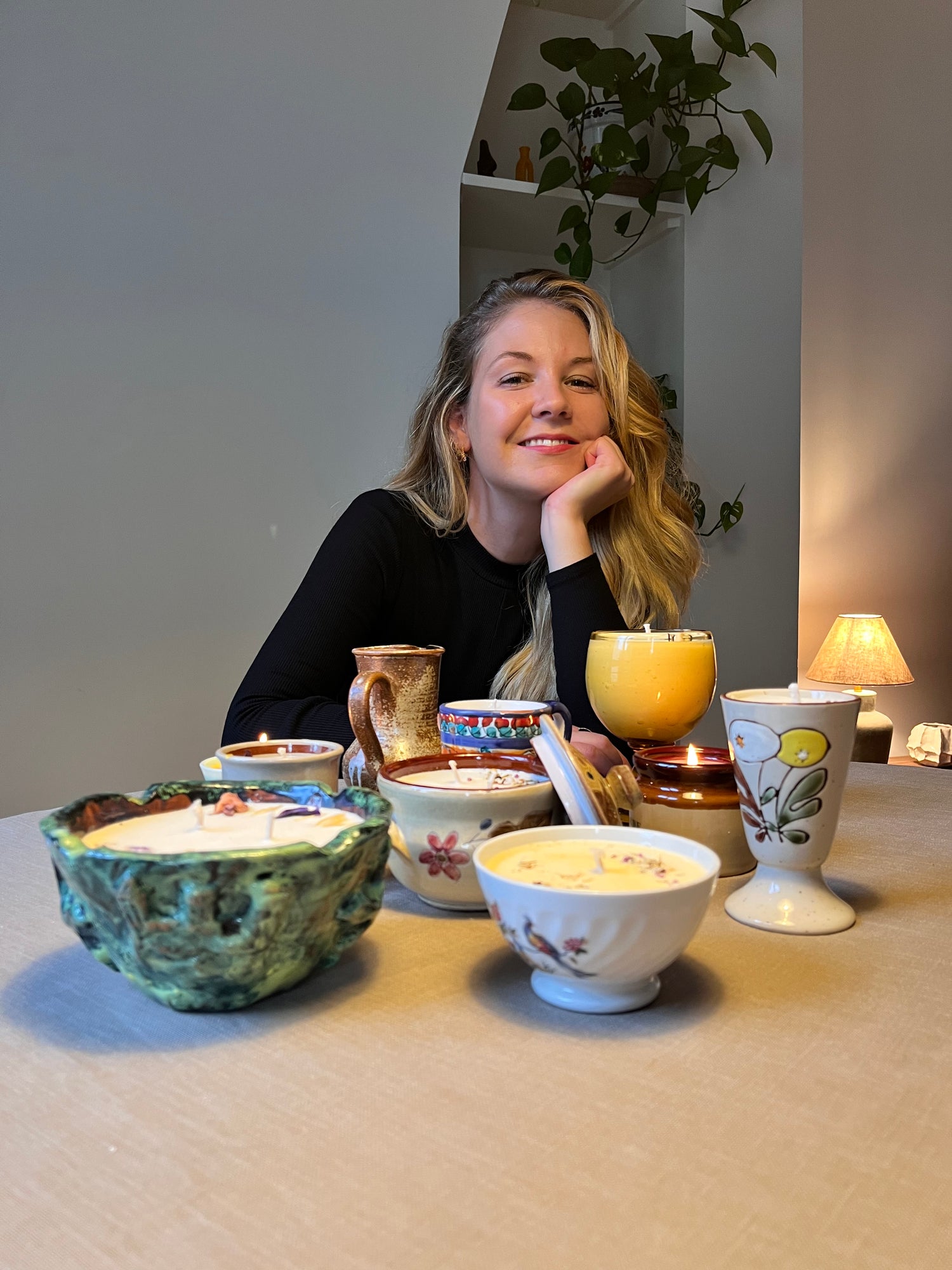Passionnée de chine et de déco, l'idée de couler des bougies dans des récipients de seconde main est venue naturellement.